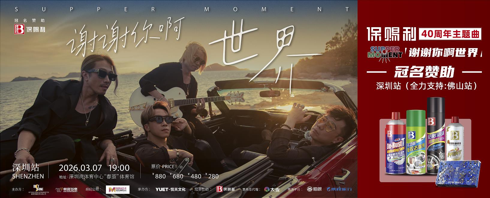 保赐利冠名赞助 supper moment 2026深圳演唱会,《谢谢你啊世界》为品牌40周年主题曲